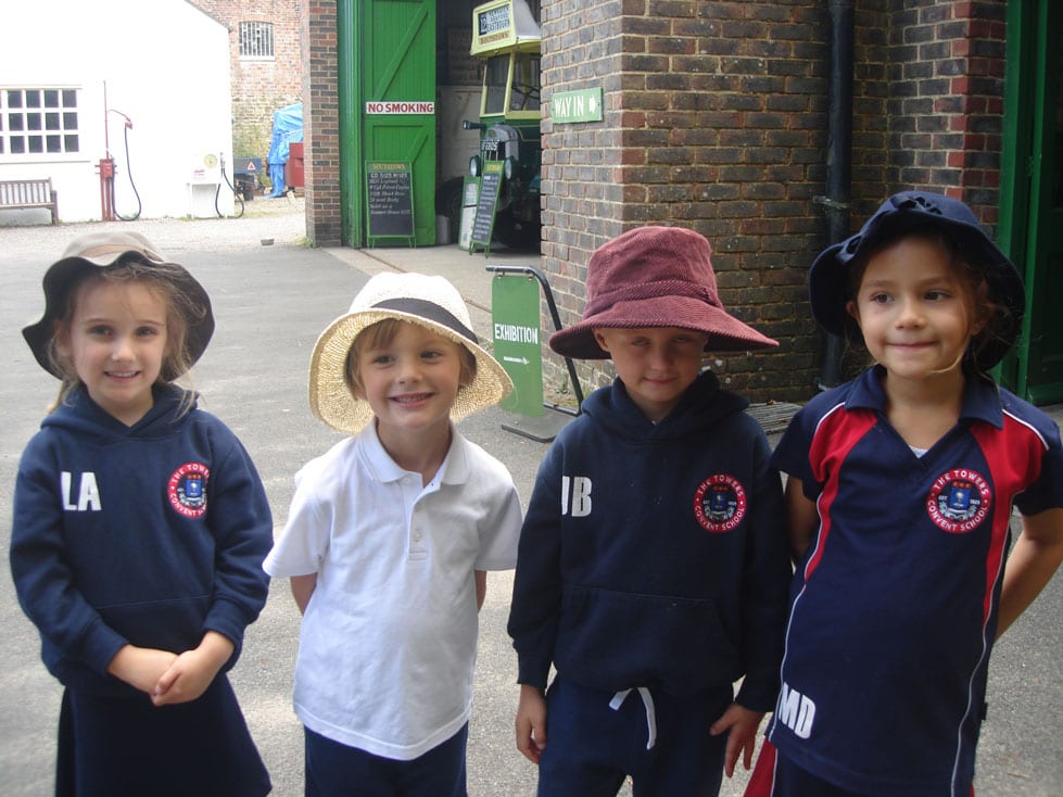 The children spent a day at the Amberley Museum finding out about transport in the past for their transport topic. The interesting day started with them looking at bicycles from over the past 100 years. The children had an exciting time on an old open top bus, with Felix driving and Edward being the conductor. We all wore period hats for our bus journey. The day finished with a ride on the miniature railway round the museum. The children all had a fabulous time and all learned something new about transport in the past.
