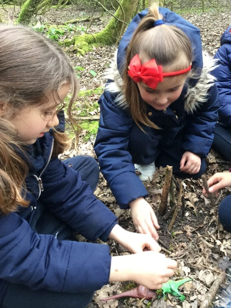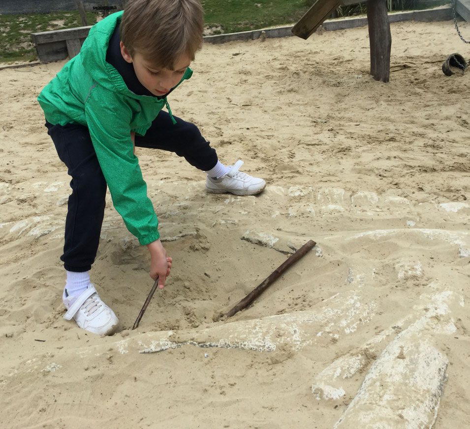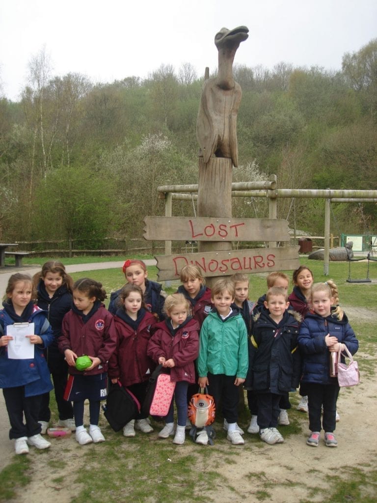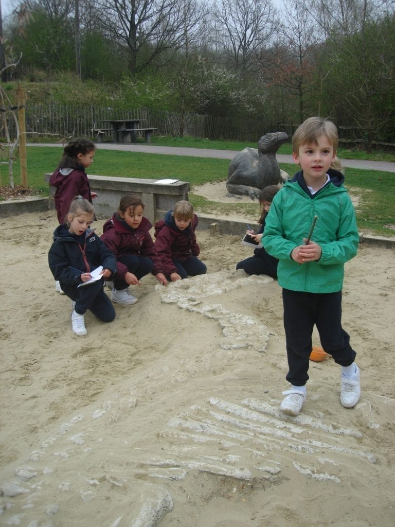 As a fabulous finale to this terms topic on dinosaurs, the children from Reception, Year 1 and 2 thoroughly enjoyed a visit to Southwater park near Horsham. Despite the inclement weather, the children fully immersed themselves in the task of finding dinosaurs hidden in the undergrowth of the forest. They were then set with the job of building their dinosaur a protective den, from the threat of a nearby erupting volcano. Time was also spent digging for dinosaur bones in the sand and sketching their discoveries. What super palaeontologists we have in the making!