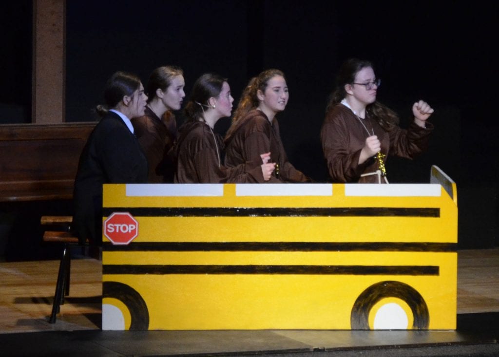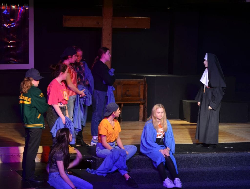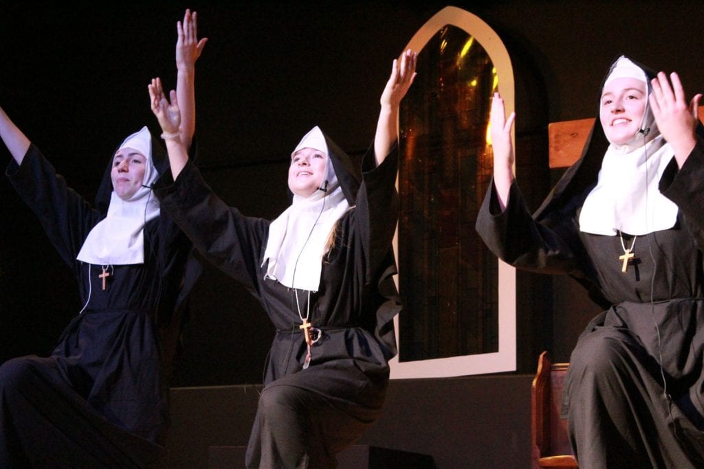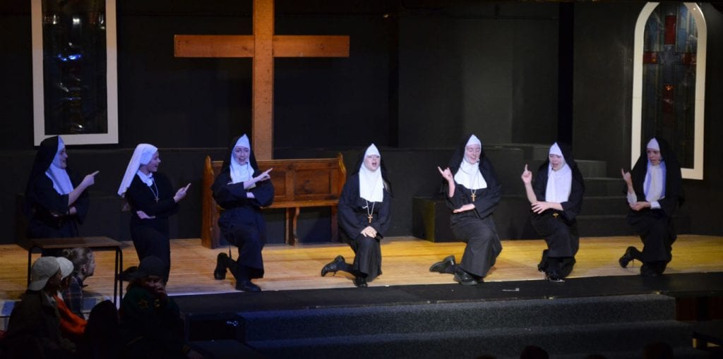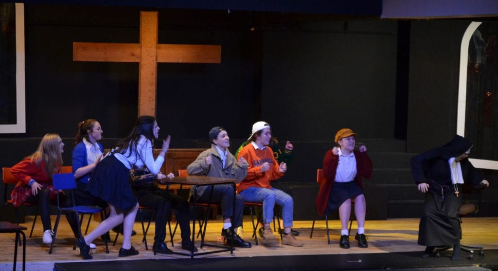 The resulting performance was joyful to behold, with uplifting songs alongside the transformation of badly behaved, disengaged pupils, who were whipped into a winning competition choir by the fabulous lounge singer Delores Van Cartier (the heroine) played by the extremely talented Maisie O. Eva N, as Sister Mary Lazarus, with her superb comedy timing, gave the audience some hilarious moments too. Superb vocal performances came from Alana F-B as the divisively forthright Rita and Amy D with her amazing vocal range, showcased as Amy Kako. Many others deserve a mention but safe to say there was not a weak performer on the stage.