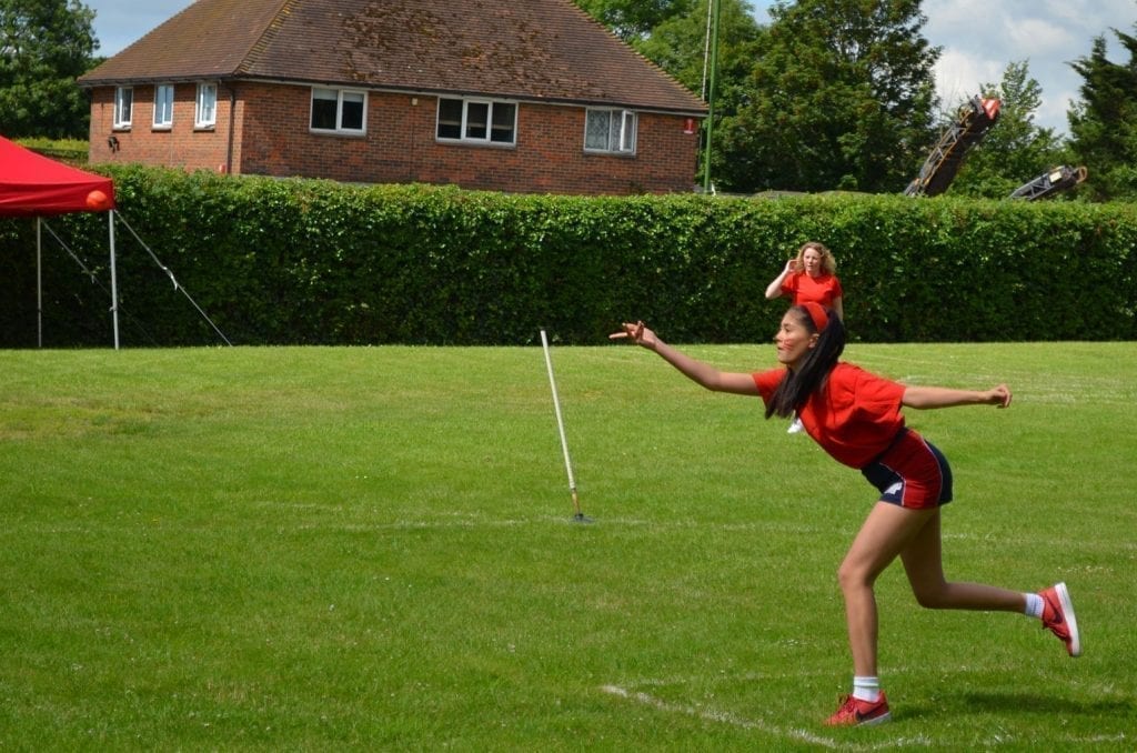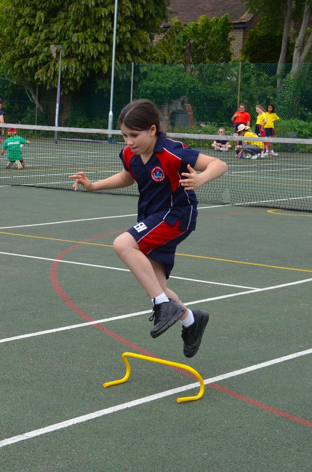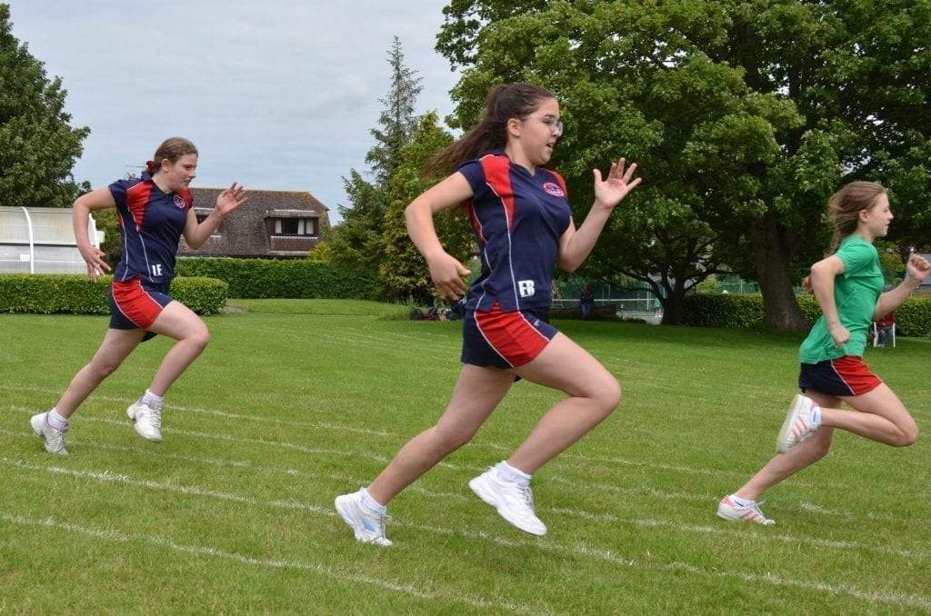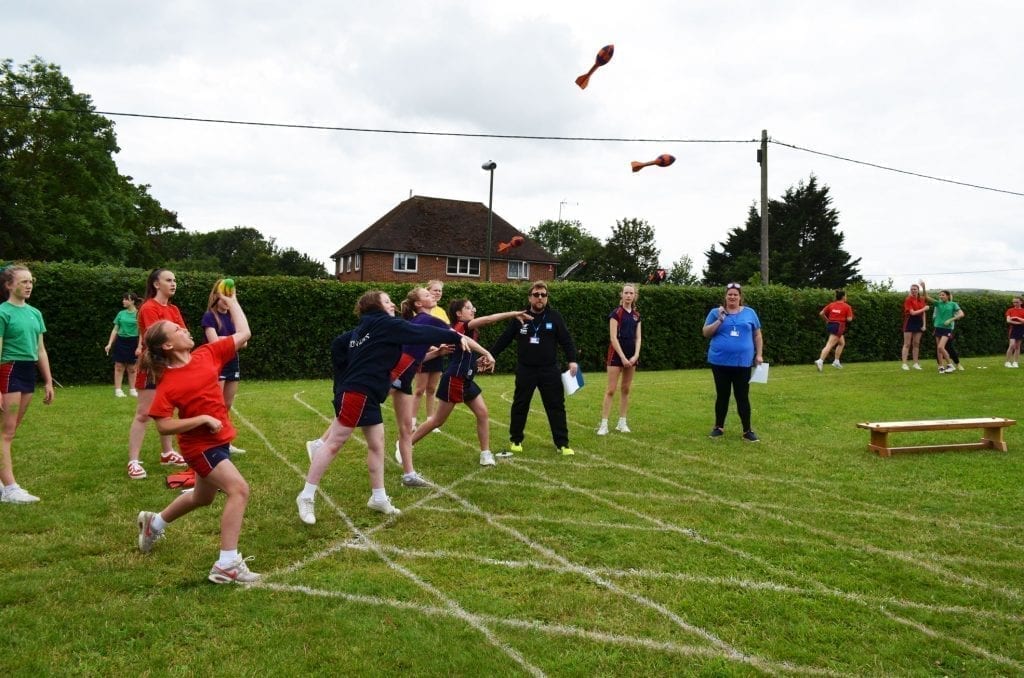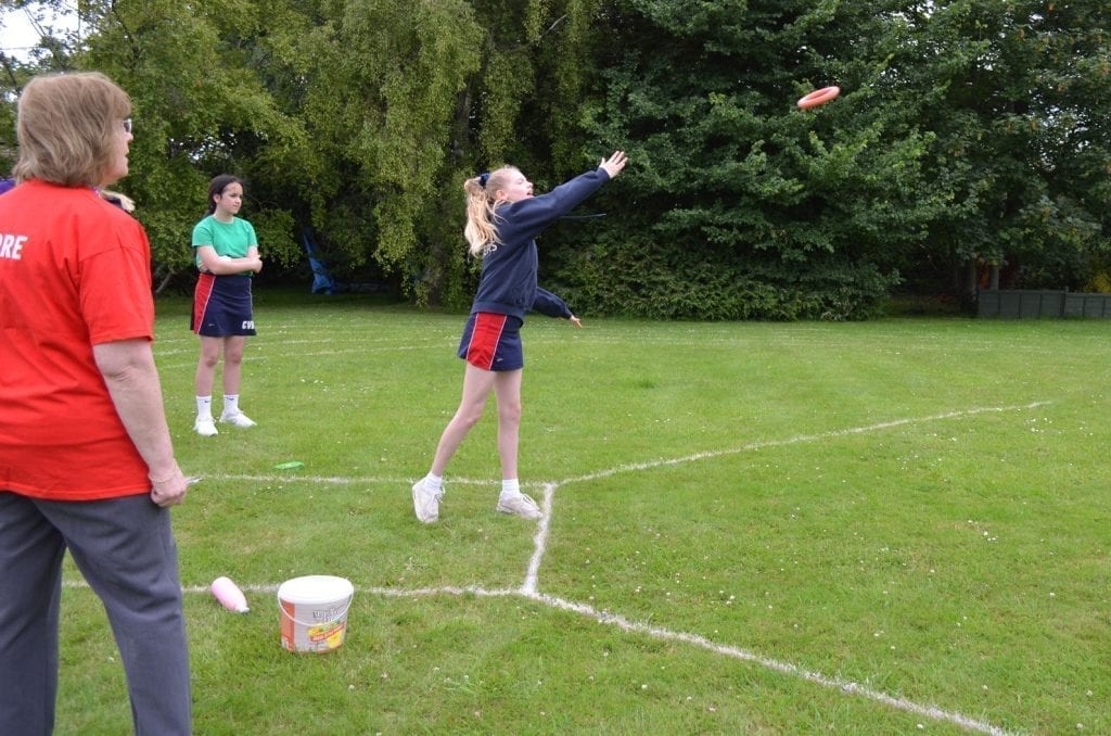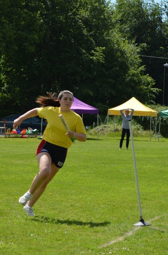 The senior athletics events started with a range of field events, shot, javelin, vortex, rounders ball, quoits, hurdle jump and standing long jump. A few of last year’s records were broken. Chiara in Year 7 and Annabel Year 10 made new vortex records by both throwing over 34 meters. Two further records were made in the standing long jump by Iyana Year 8 and Lottie in Year 10. In the quoits event Chiara in Year 9 threw over 30 meters. More won the senior field events.